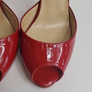 Christian Louboutin Patent Peep Toe Red Heels Size 37.5