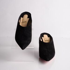 Christian Louboutin Womens Black Quart 80 Suede Leather Heels Mules Slides EU 36 US 6