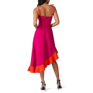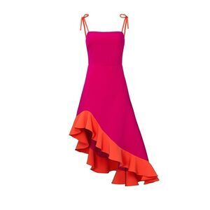 Equal parts elegant and alluring, this colorblocked self-tie strap dress by Christian Siriano features asymmetrical ruffles for a dramatic statement.