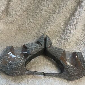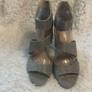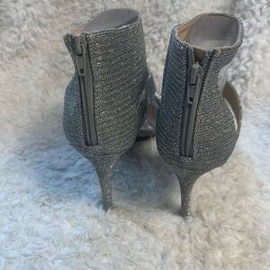 Christian Siriano Silver Shimmer strappy 3.5" Heels Open Toe Ankle Strap SZ12