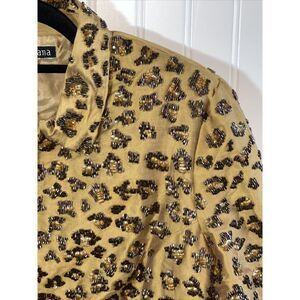 Christiana Silk Beaded Zipper Leopard Jacket /Wrist Zips 100% Silk Lining Size S light shoulder pads. In very good condition.