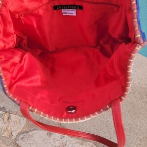 Absolutely stunning vintage Christiana beaded bag. Front and back have the same gorgeous beaded pattern. This bag is in excellent, like new condition. No loose beads and the inside is spotless. Its unique combination of colors and patterns makes it a standout accessory for any occasion.