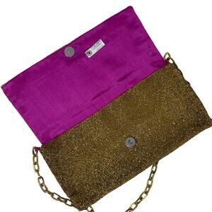 Christiana Vintage 90s/Y2K Evening Bag Gold Beaded Shoulder Bag with hot pink lining. No missing beads noted and gold chain is in great condition. EXCELLENT USED CONDITION! Measurements: Length: 11 inches Height: 5.75 inches Depth: 1.25 inches Strap drop: 12 inches