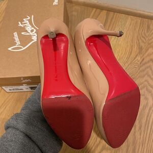 Size 38. Gently used. Bottoms have been covered. Need to repair heels. Nude round toe. 100% authentic.