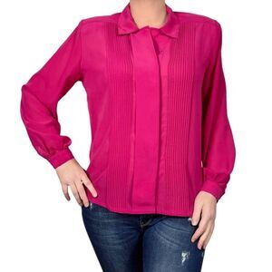 Christie & Jill Pink Pleated Long-Sleeve Blouse