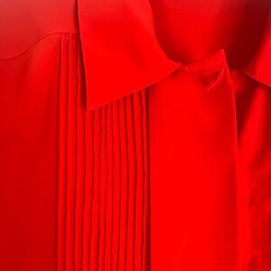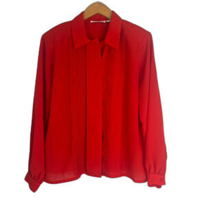 Christie & Jill Pleated Front Power Red Long Sleeve Button Front Blouse Size 14