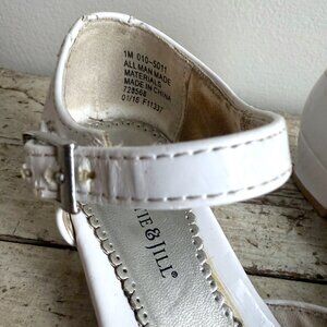 Christie & Jill Toddler Girls 1M White Isla Flowers Traditional Heel Dress Shoe. Featuring a solid white color with beautiful bow accents.