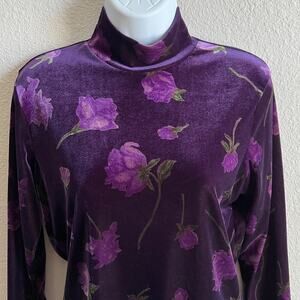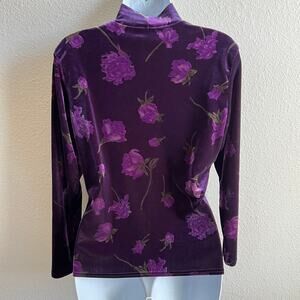 Christie & Jill Vintage Purple Floral Velvet Turtleneck Top Women's S Stretch
