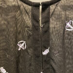 Details: Great looking, Long sleeve, Sheer top. Embroidery detail (see pictures). Eye Hook Closure. Great for work, office, dinner, evening.