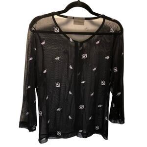 Christie & Jill, size M/L, Sheer Black top, Long sleeve