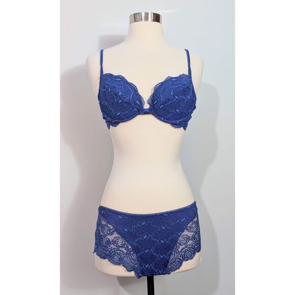 Christie's Designer Italian Blue Lace Bra and Panty Set