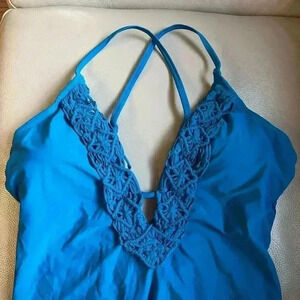 Christina Bohemian Aqua Blue Crochet Front One Piece Swimsuit Size XL