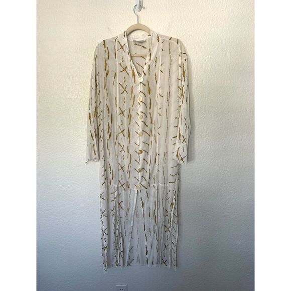 Christina Fairbanks Vintage Rayon Pearl Button Maxi Gold Sheer Dress Swim Cover