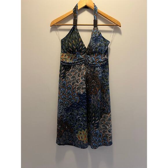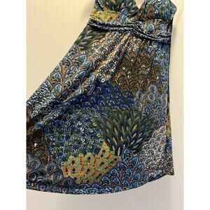 Christina Love Halter Dress Abstract Peacock Print Size Medium JL