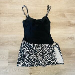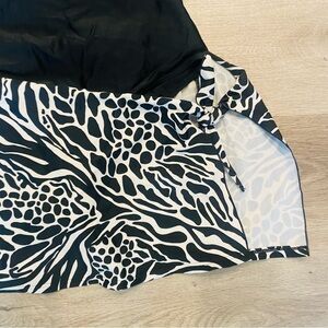 Christina One Piece Wrap Skirt Swimsuit Black & White Safari Animal Print 10