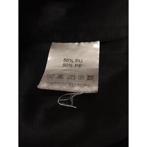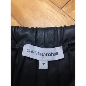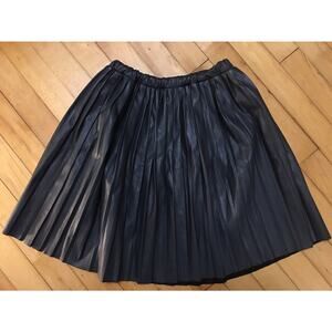 Size 7. Navy pleated faux leather skirt. Elastic, adjustable waistband. Unlined. Tag has some fray.