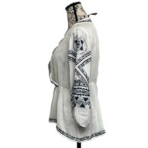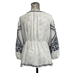 Christina V Boho Peasent Embroidered Cropped Blouse Vneck Sheer Peasent Womens M