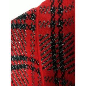 Christina woman's open front knit red plaid silver shimmer sweater in good condition. Soft feel academia workwear business casual