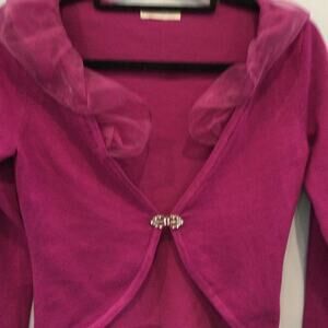 Christina Womens Ruffle Cardigan Size XS Rhinestone Whimsigoth Coquette Fuchsia