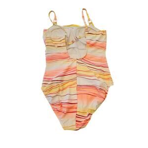 Christina Womens Sz 14 One Piece Swimsuit Striped Pastel Pink Yellow