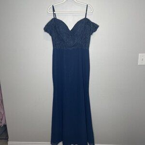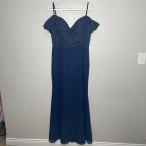 Christina Wu Bridesmaid Mother of Bride Dress 22801 Navy Blue Lace Chiffon Size 12.