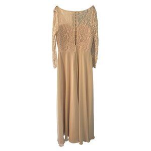 Christina Wu Celebration Latte Cream Lace Gown Size 12 Long Sleeves Floor Length