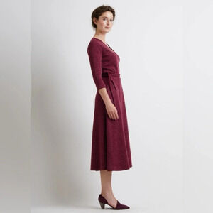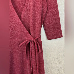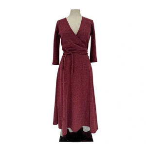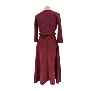 Christine Alcalay Small Wrap Sweater Dress Burgundy Midi Length Pockets