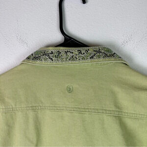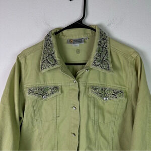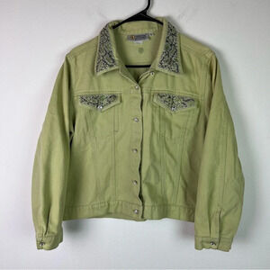 Christine Alexander Denim Jacket Bedazzled Size Large Bright Green Button Up