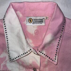 Christine Alexander Pink Rhinestone Denim Jacket Size Small Gemstone Accents