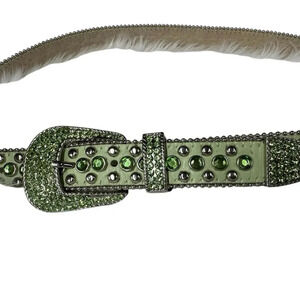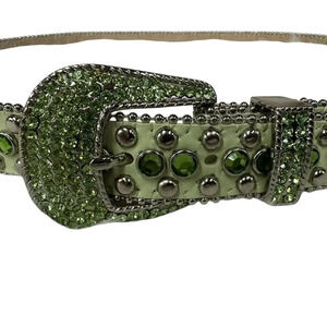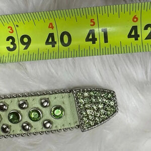 Christine Alexander Swarovski Crystal Studded Green Leather Belt Size Large