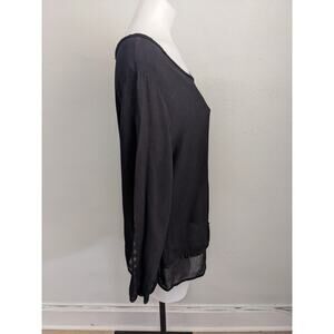 Christine Damen Size Small Sheer Hem Shirt Blouse Black 100% Rayon Long Sleeves
