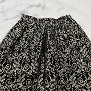 Christine David Womens Vintage Midi Skirt Size M New Gold Black Lace Metallic