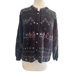 Christine Foley Embroidered Cotton Cardigan Sweater | Vintage Boho Folk Knit | S