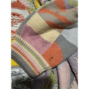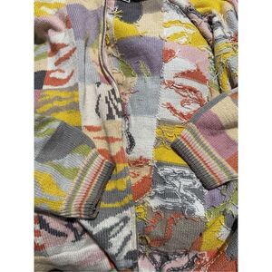 Christine Foley abstract art to wear knit sweater front zip up. Size 2 has a few spots shown in picture no rips