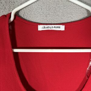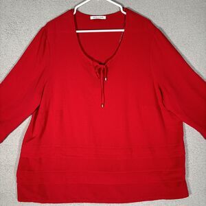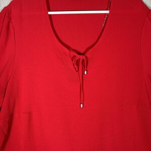 Christine Laure Women’s Size 5 3/4 Sleeve Red Blouse Key Hole Neck