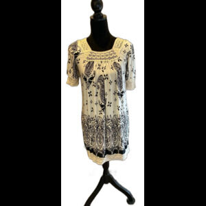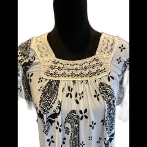 Christine Love Top Tunic Blouse Size Small Square Lace Neckline & Hem + Stretch