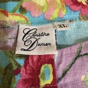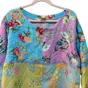 Christine Damen Blouse Womens XL Multicolor Patchwork Floral Linen Top