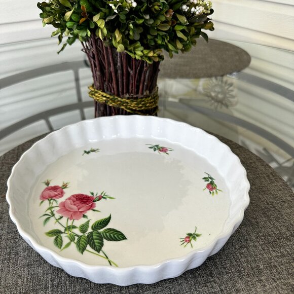 Christineholm 9 1/2" Porcelain Rose Pattern Quiche/Pie Baking Dish
