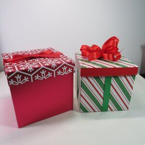Christmas (2) Gift Boxes with bows Holiday Metallic & striped