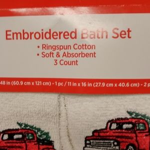 Christmas 3 Pc Bath Set Embroidered Truck & Tree Spun Cotton