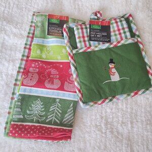 Christmas 4pc. Towel & Oven Mitt Set with Free Gift