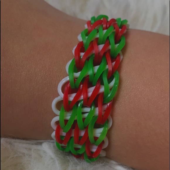 Green and red Christmas bracelet good quality and durability waterproof Brand-rainbow loom Hand model- Nataley