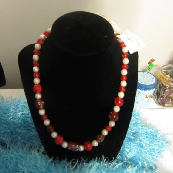 Beautiful beads of red with pearls. Perfect for Christmas time or for when you feel the red and pearls look.