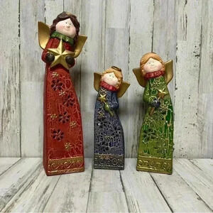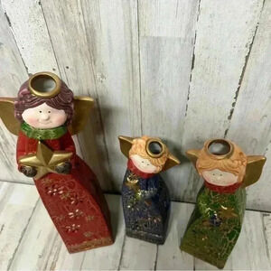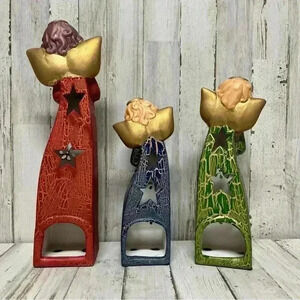 Christmas Angel Candle Holders Tea Lights Set of 3 Ceramic Height 12", 9", 8"