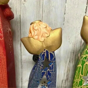 Add a touch of elegance to your Christmas decor with this set of three ceramic candle holders in the shape of angels. Perfect for tea lights or flameless/LED candles, these holders are suitable for any room and any occasion. The multicolor design and matte finish make them a beautiful addition to your home.