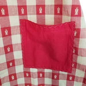 Christmas Angels Kitchen Apron, Red and Tan, with Wrap Tie and Pocket