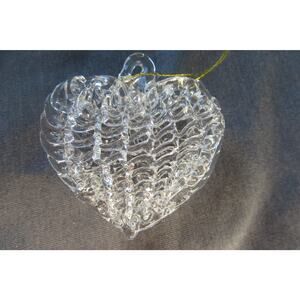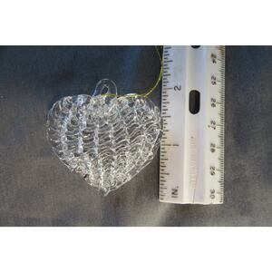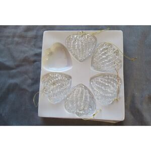 Christmas Around The World Clear Spun Glass Hearts Christmas Ornaments. Original Box made for 6 but only has 5 hearts included. Measure 2 inches. No visible cracks chips or discoloration.