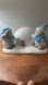 Set includes a napkin holder, salt shaker and pepper shaker. Great preloved condition, 1 teeny chip on snowman hat (see photos).