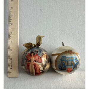 VTG Christmas Ball Ornament Lot of 2 Salvation Army 1987 Girl in Blue Satun.