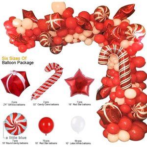 Christmas Balloon Garland Arch kit 144 Pieces with Christmas Red White Candy